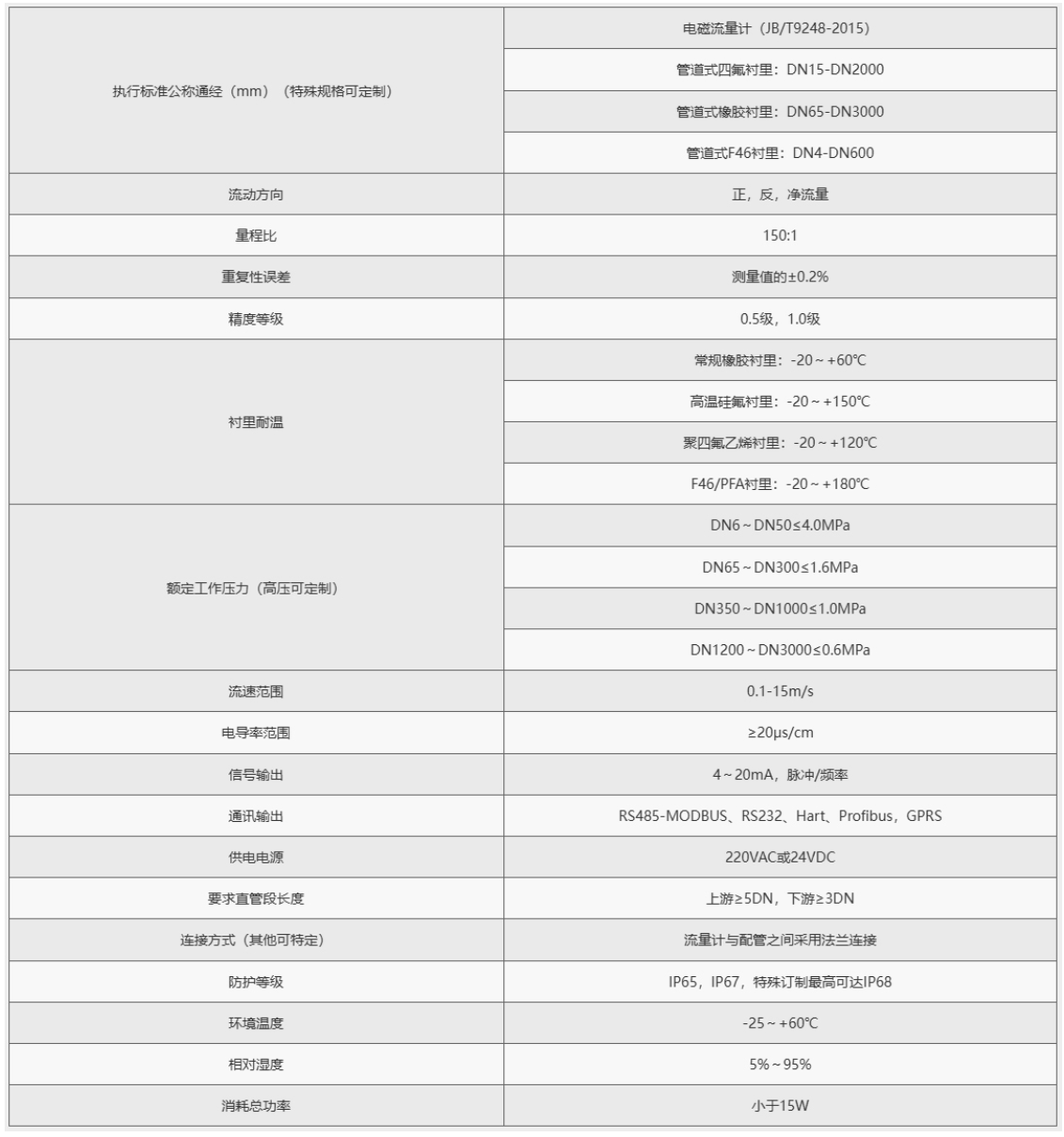 分体是电磁流量计适用于各种酸、碱、盐等强腐蚀性的污水、泥浆、矿浆、纸浆等导电液体的流量、流速、热量等参数测量,精度:0.5级。标配RS485通讯,4-20mA输出。同时可根据客户需求定制无线远传,电池供电,防爆报警型。广泛应用于石油、化工、冶金、轻纺、造纸、环保、食品等工业部门及市政管理,水利建设,河流疏浚等领域的流量计量。